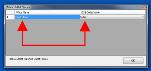 - Please note if you only have one office and one outlet then you will not see this window, this step will be done automatically for you.
