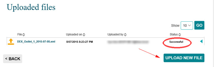 Upload the file, by default the DEX Bulk File can be located on your desktop; eg. DEX_Outlet_2015-06-29.xml